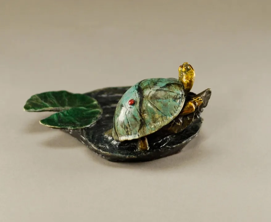 3×9 by Eli Hopkins A close-up of Eli’s renowned Creature Comforts, Johnny On the Spot features an adorable turtle unsuspecting of his ladybug hitchhiker.